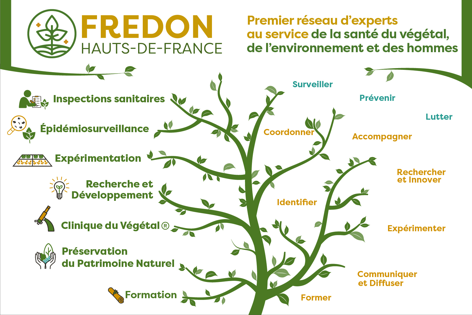 Au service des professionnels agricoles, des collectivités, des entreprises et des particuliers, FREDON assure une veille sanitaire sur le territoire régional, mène des actions de prévention et de sensibilisation et propose des solutions de lutte contre les organismes nuisibles. Intégré à un réseau national, il agit avec indépendance, impartialité et professionnalisme, selon une approche transversale fondée sur le concept « Une seule santé », qui relie santé végétale, humaine et environnementale. La mutualisation des compétences du réseau est ainsi mise au service de tous les détenteurs de végétaux, dans une logique d’intérêt général, en zones cultivées comme non cultivées.