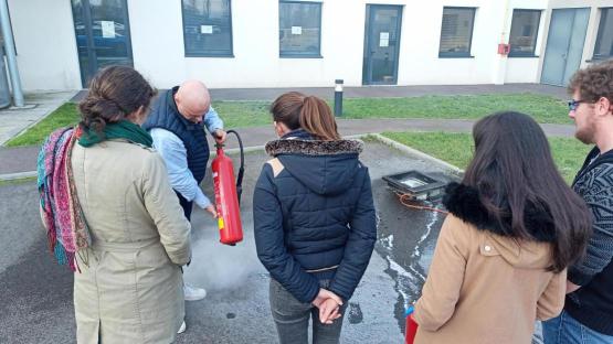 Utilisations des extincteurs lors d'une simulation d'incendie sur le site de Rouen et sur le site de Caen (novembre 2022)