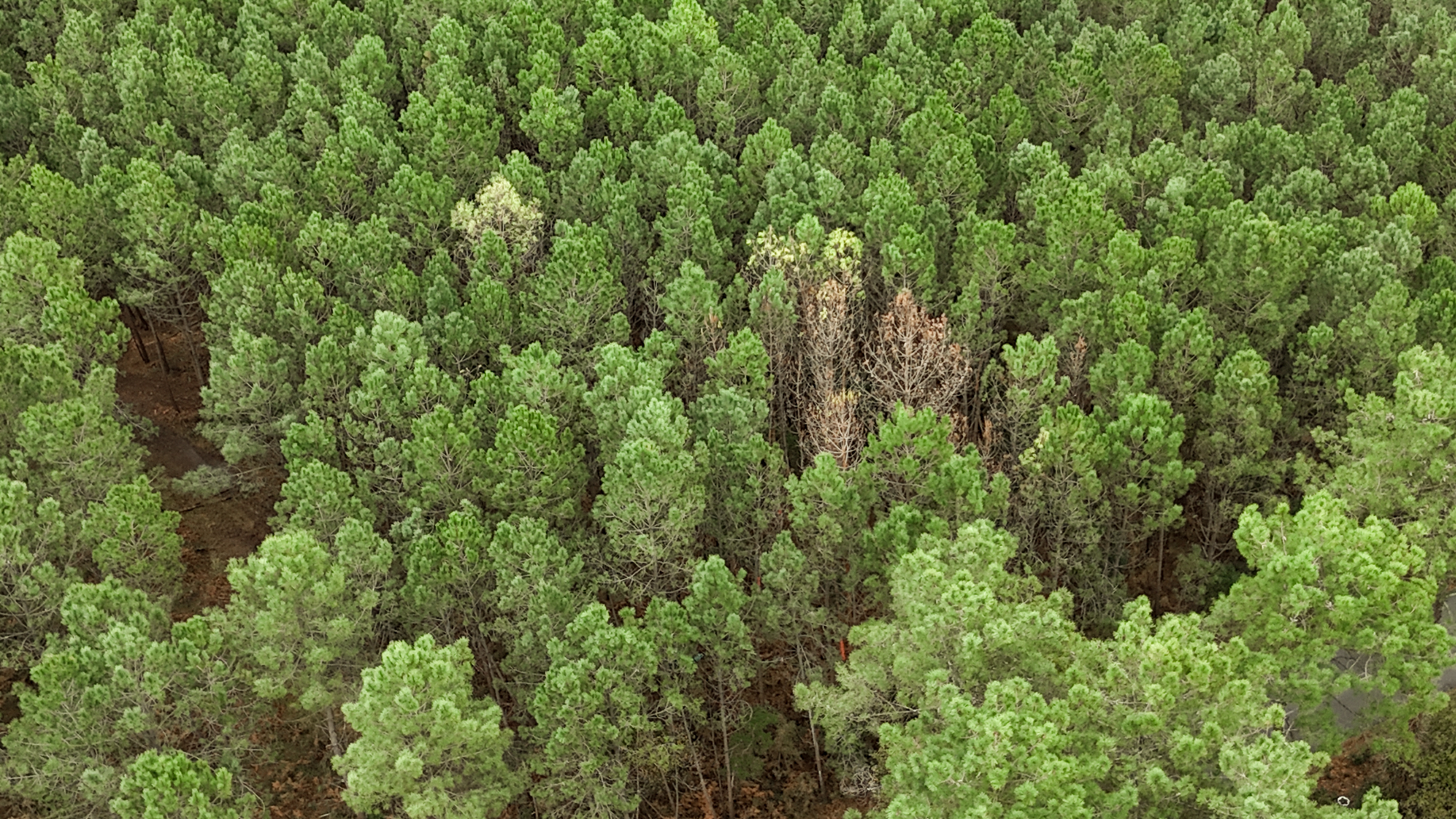 Si vous observez des pins présentant un dépérissement anormal (aiguilles brunissant, branches se desséchant rapidement, arbres morts sans cause apparente) :