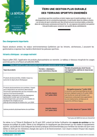 La Dépêche verte - votre bulletin d'informations communal 2025 Fleurir au fil des saisons Gérer les terrains de sport enherbés 2024 Commune Nature L'arbre en ville La trame brune Espèces à Enjeux pour la Santé Humaine 2023 Cimetières au naturel Construire pour demain Aménager pour la biodiversité Communiquer vers ses administrés 2022 Loi Labbé Lutter contre les îlots de chaleur urbains Végétalisation des cours d'école 2021 Commune Nature Extension de la loi Labbé Gestion des arbres et arbustes Les déchets verts UDM 2024