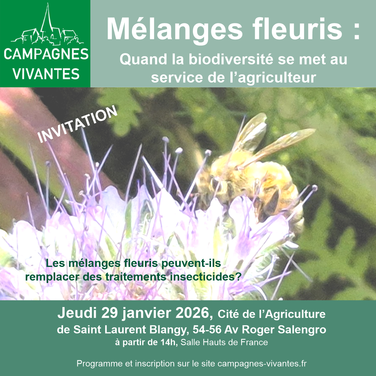 FREDON Hauts-de-France interviendra au colloque dédié à la biodiversité, organisé par Campagnes vivantes le 29 janvier 2026 à Arras, à la cité de l'agriculture, à 14h00 sur la thématique : "Mélanges fleuris : quand la biodiversité se met au service de l'agriculteur".