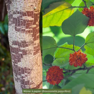 • Mûrier à papier (Broussonetia papyrifera) : introduit pour la production de papier et comme arbre d’ornement, il se développe rapidement et fait de l’ombre aux végétations indigènes.