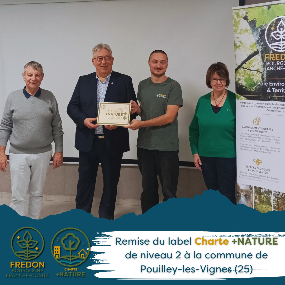Au cours de l’été 2025, les communes de Franois (25) et de Pouilley-les-Vignes (25) ont respectivement obtenu le niveau 1 et 2 du label « Charte +Nature », décerné par le réseau FREDON.
