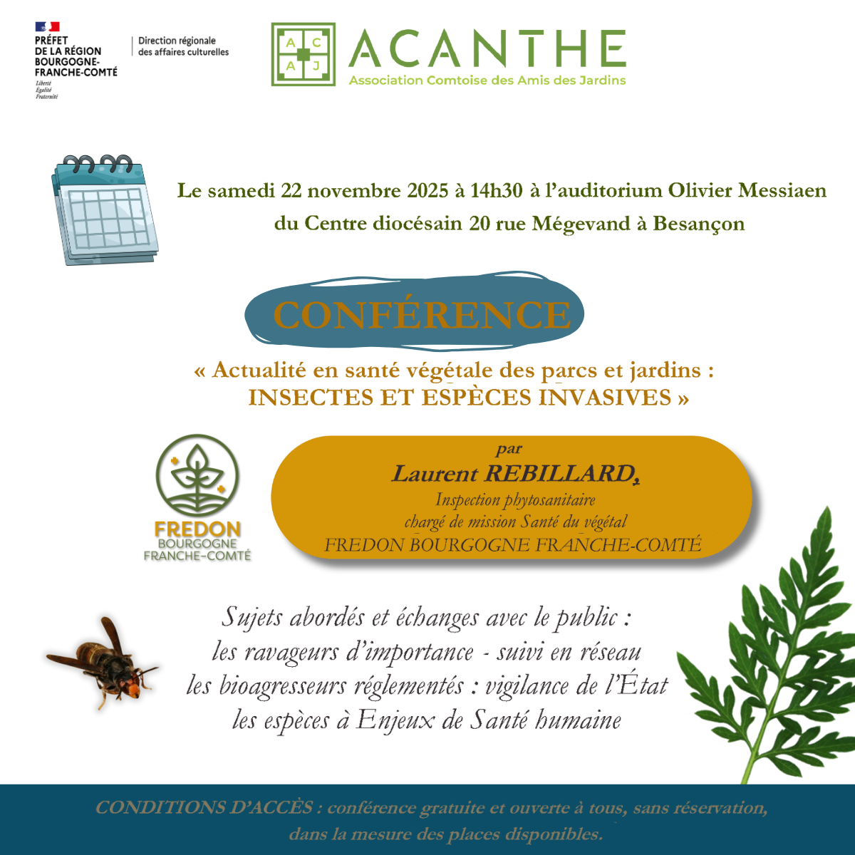 Venez assister à la conférence "Actualité en santé végétale des parcs et jardins : Insectes & Espèces Invasives",