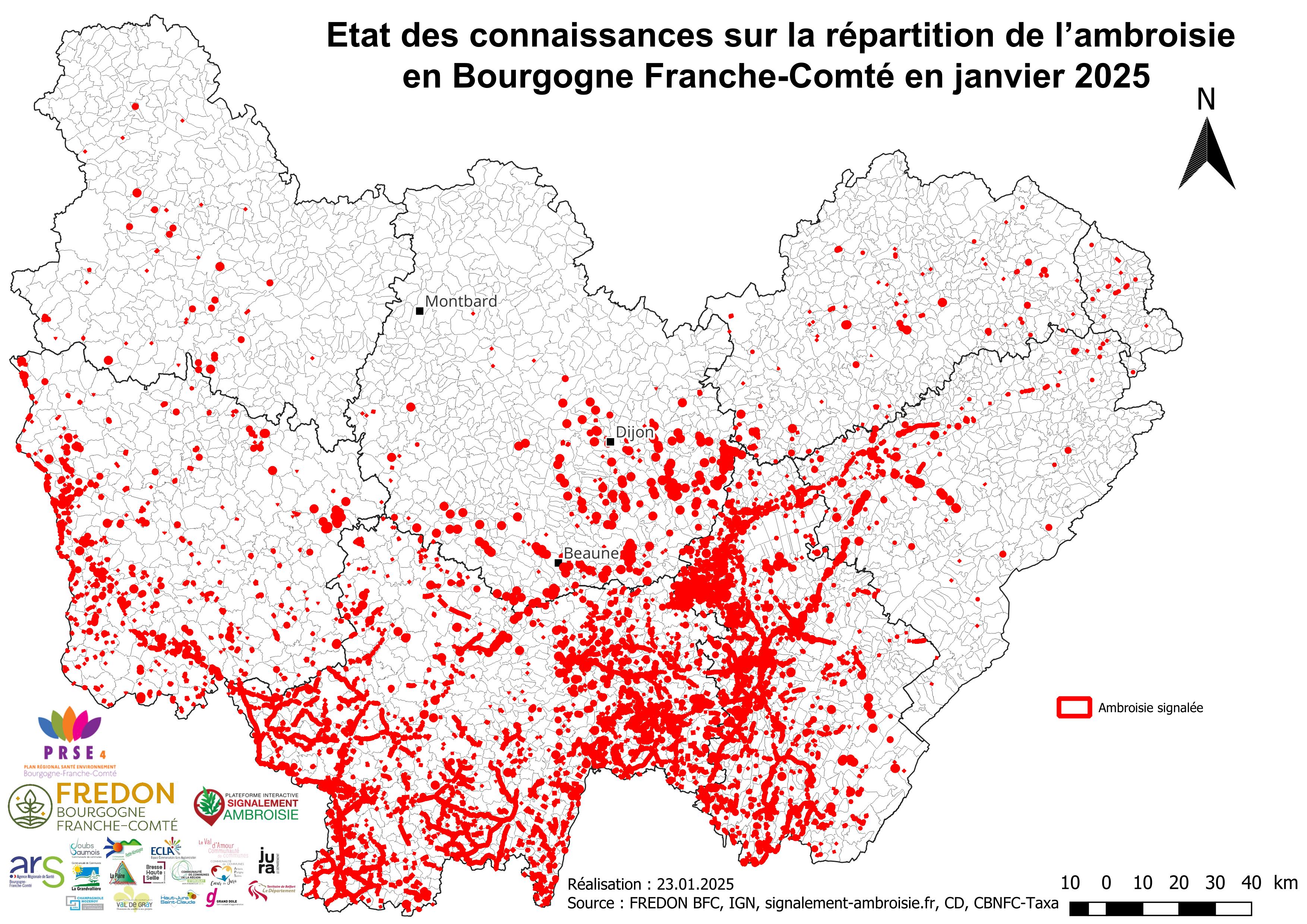 Pour obtenir les détails de la présence de l’ambroisie sur votre commune ainsi qu’une carte spécifique, merci d’adresser votre demande à : contact@fredonbfc.fr