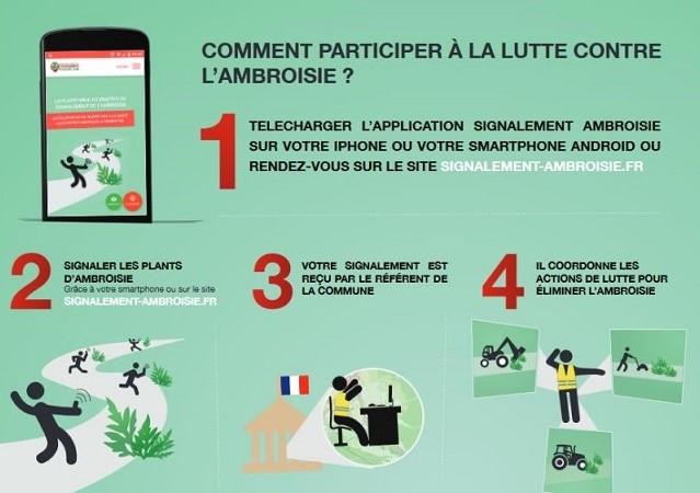 De plus, il est demandé aux collectivités, communautés de communes, de nommer un ou plusieurs référents ambroisie. Son rôle est de repérer la présence et participer à la surveillance de l’ambroisie, mais aussi d’avertir les personnes concernées et de piloter les actions de lutte. Pour inscrire un référent, merci de vous rendre sur la plateforme.