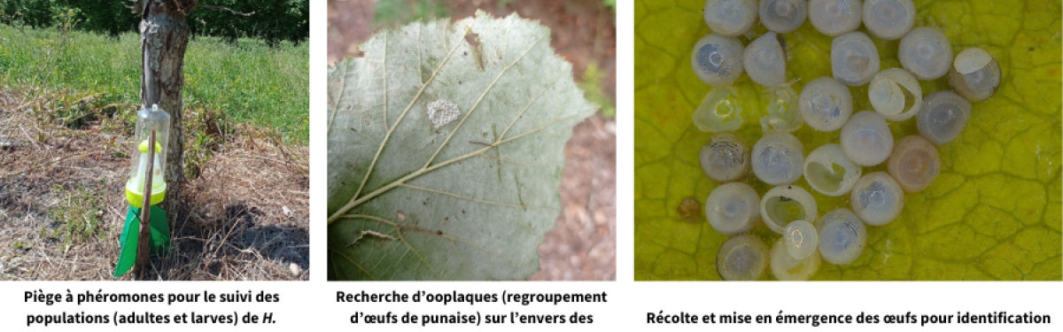 Les premiers travaux réalisés concernaient l’étude des populations de la punaise diabolique et des parasitoïdes oophages (s’attaquant aux œufs) associés présents dans 3 parcelles candidates sur le territoire alsacien. L’objectif à terme est l’introduction d’auxiliaires de lutte biologique prometteurs tels que les hyménoptères parasitoïdes Trissolcus japonicus et/ou Trissolcus mitsukurii .
