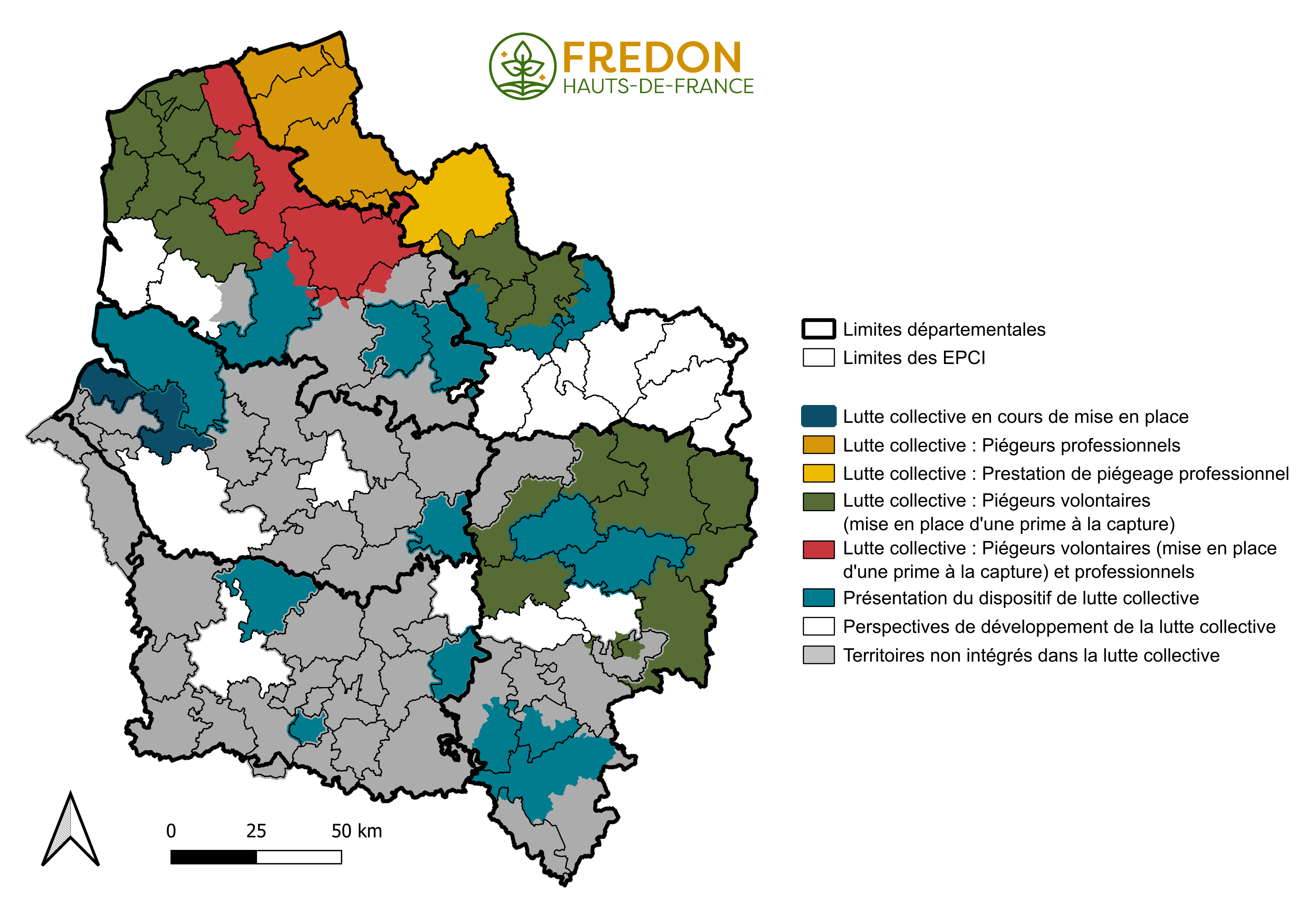 Avec le soutien de la DRAAF/SRAL Hauts-de-France de 2003 à 2024, depuis 2016 avec le soutien du Conseil Régional des Hauts-de-France et depuis 2025 avec le soutien de la DREAL Hauts-de-France, FREDON accompagne les groupements opérateurs pour satisfaire aux obligations de rigueur et de traçabilité que l’organisation de cette lutte collective et obligatoire exige, notamment en les aidant à rendre compte des actions de lutte mécanique.