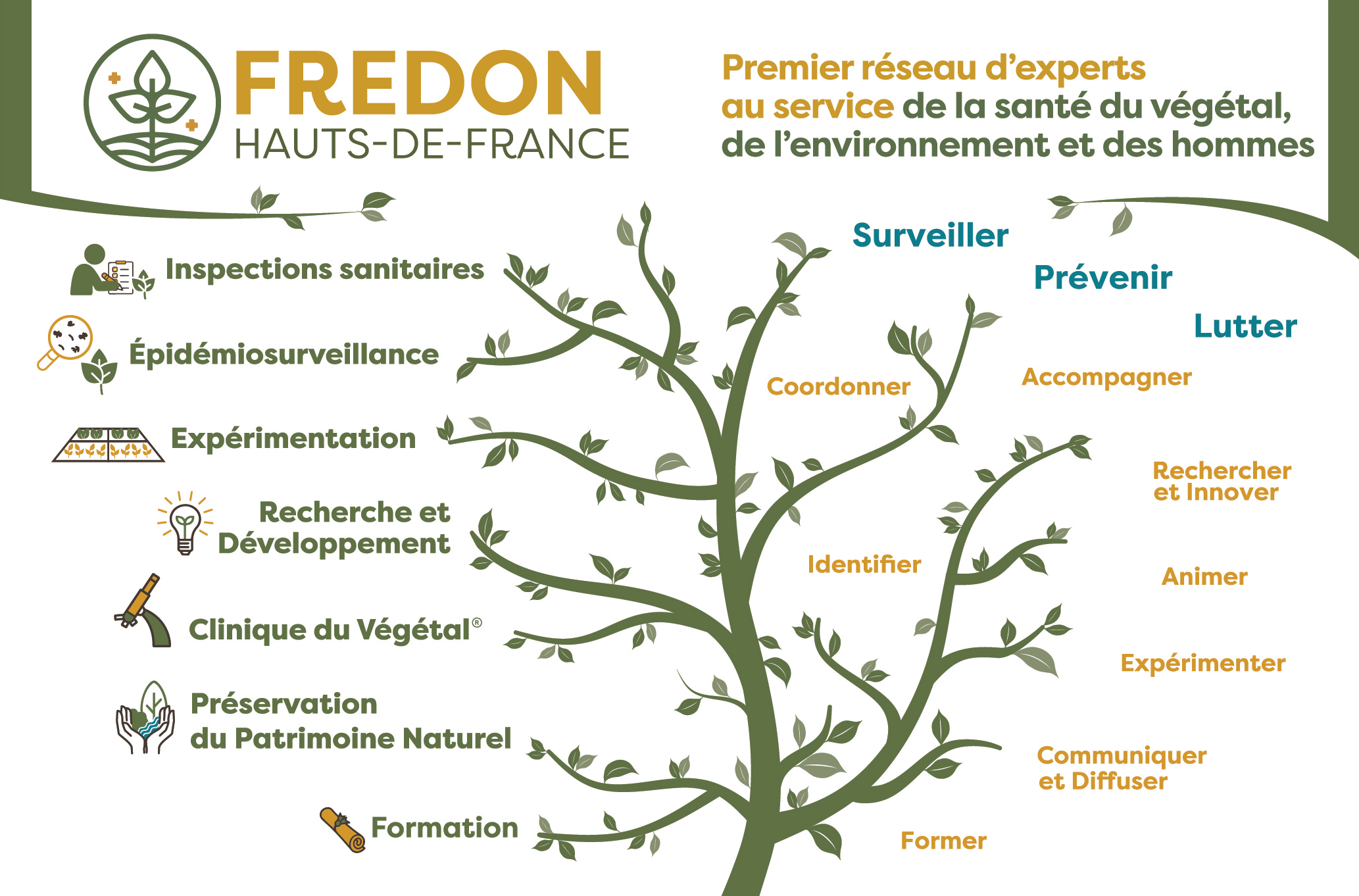 Au service des professionnels agricoles, des collectivités, des entreprises et des particuliers, FREDON assure une veille sanitaire sur le territoire régional, mène des actions de prévention et de sensibilisation et propose des solutions de lutte contre les organismes nuisibles. Intégré à un réseau national, il agit avec indépendance, impartialité et professionnalisme, selon une approche transversale fondée sur le concept « Une seule santé », qui relie santé végétale, humaine et environnementale. La mutualisation des compétences du réseau est ainsi mise au service de tous les détenteurs de végétaux, dans une logique d’intérêt général, en zones cultivées comme non cultivées.