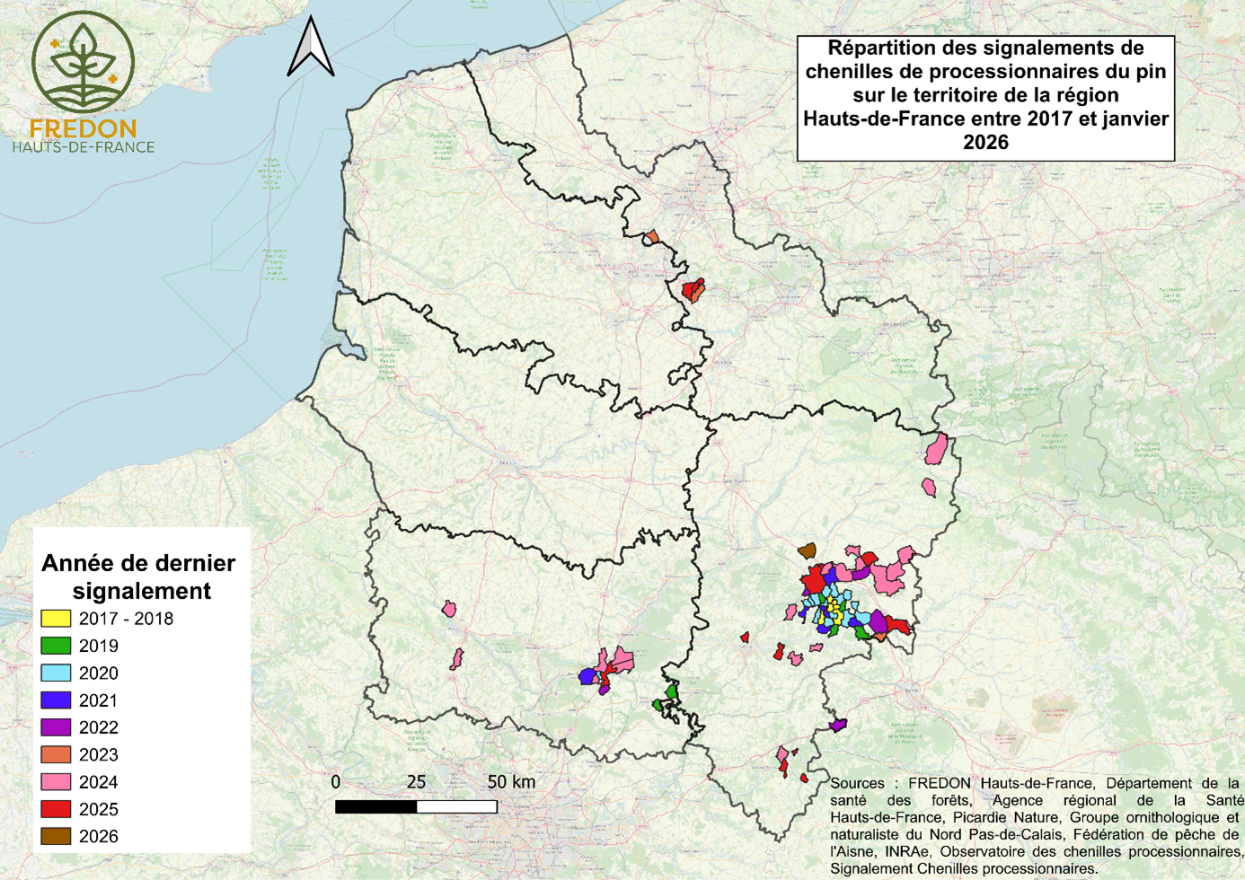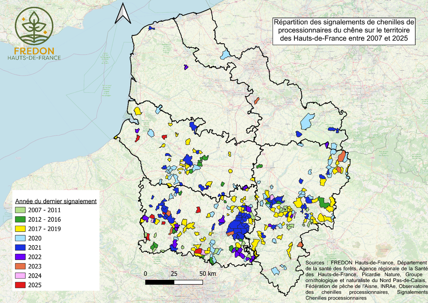 Ces insectes font partie de la famille des Notodontidae. Ce sont des chenilles invasives présente naturellement sur le territoire métropolitain. Elles progressent depuis plusieurs années sur l’ensemble du territoire métropolitain grâce aux changements climatiques. Aujourd’hui, ces insectes sont présents sur le territoire des Hauts-de-France. Sur le territoire, la chenille processionnaire du chêne est la plus prolifique, mais la chenille processionnaire du pin est également présente. Il est donc important de surveiller le développement de ces espèces, à risque sanitaire de par leurs soies urticants et leur prolifération. En 2022, ces chenilles ont été classées comme espèces dont la prolifération est nuisible à la santé humaine dans le code de la santé public (Décret n° 2022-686 du 25 avril 2022 relatif à la lutte contre la chenille processionnaire du chêne et la chenille processionnaire du pin).